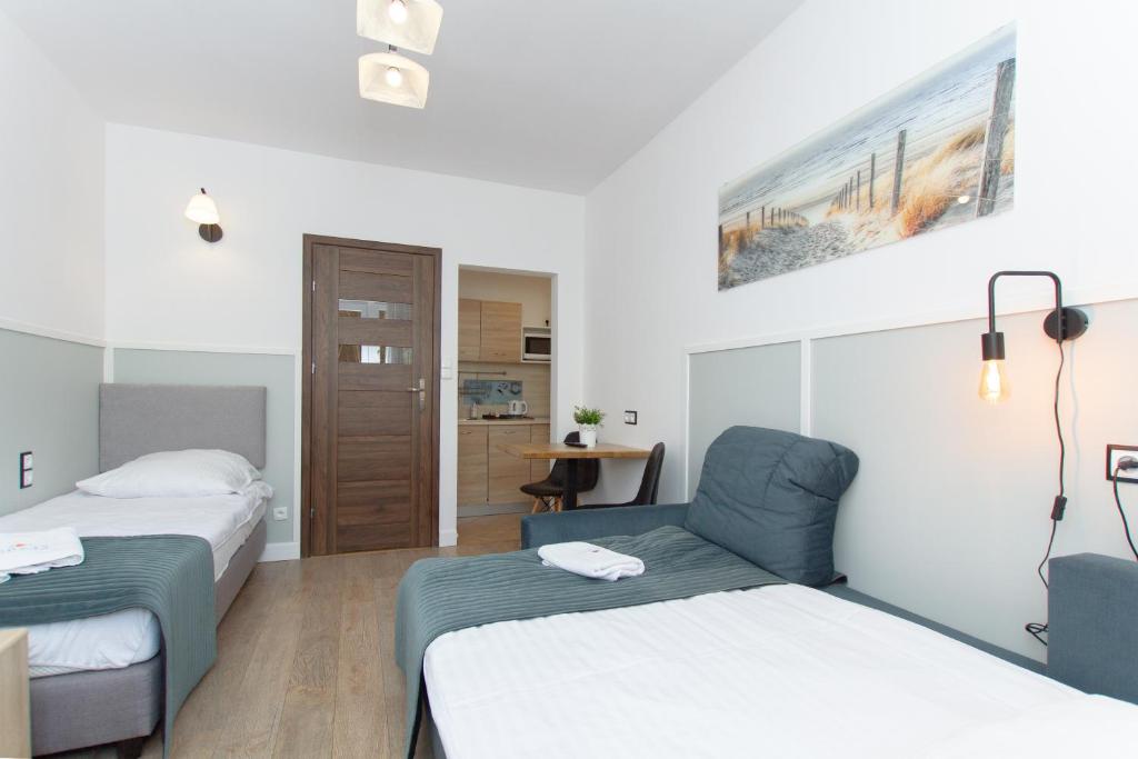 Rodzinny apartament typu Studio. In the well-fitted kitchenette, guests will find a stovetop, a refrigerator, kitchenware and a microwave. The studio provides air conditioning, a wardrobe, a balcony with garden views as well as a private bathroom featuring a walk-in shower. The unit offers 3 beds. Powierzchnia pokoju ok.: 33 mkw. ;