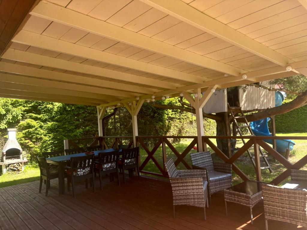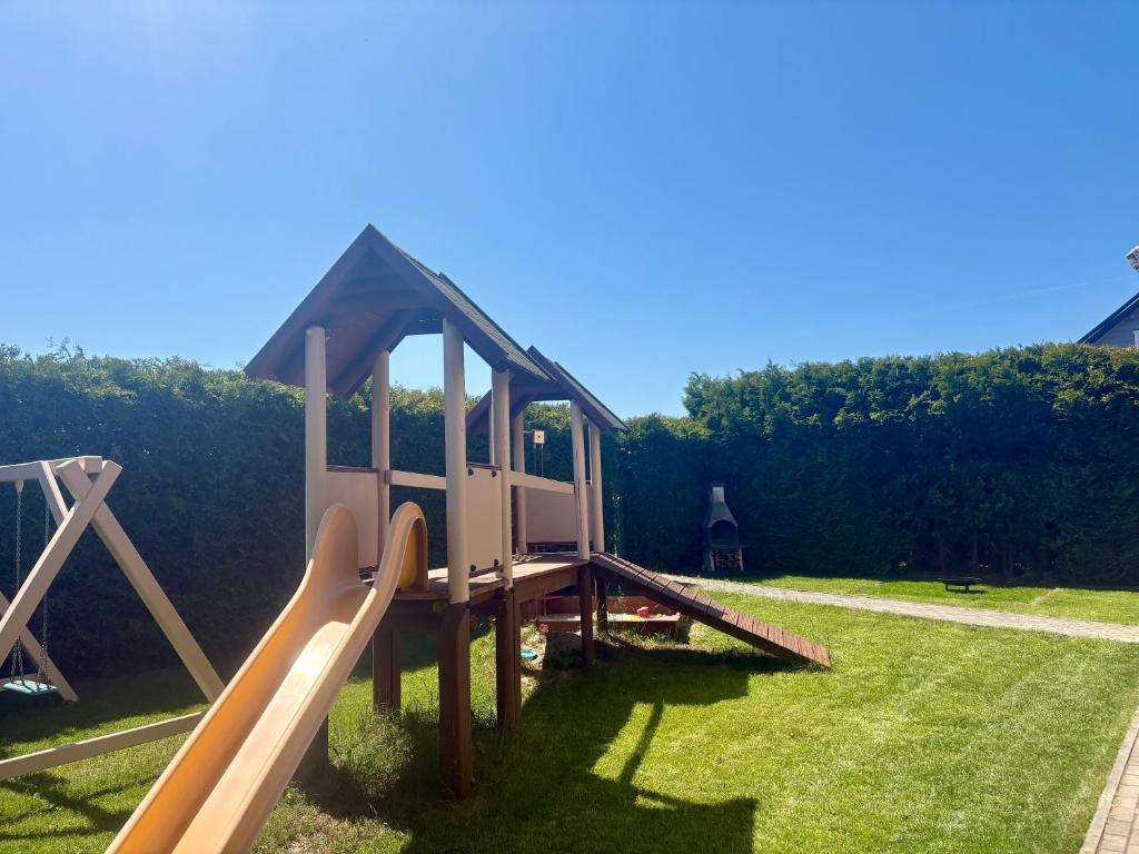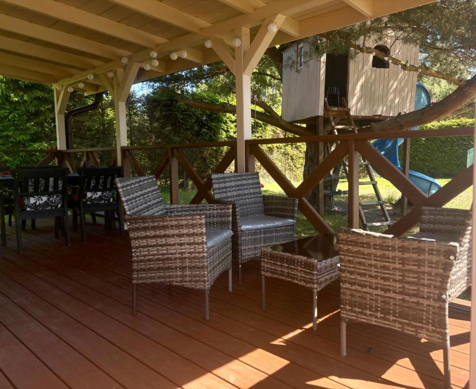Willa z 3 sypialniami. Boasting a private entrance, this villa also features 1 living room, 3 separate bedrooms and 1 bathroom with a shower. Guests will find a stovetop, a refrigerator, a dishwasher and kitchenware in the well-fitted kitchenette. The villa also comes with a barbecue. Featuring a terrace with garden views, this villa also features a washing machine and a flat-screen TV with cable channels. The unit has 8 beds. Willa - 9 osobowy. Powierzchnia pokoju ok.: 80 mkw. ;