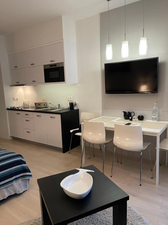 Apartament z 1 sypialnią. The well-equipped kitchen features a stovetop, a refrigerator, a dishwasher and a microwave. Featuring a terrace with garden views, this apartment also provides a washing machine and a flat-screen TV. The unit offers 2 beds. Apartament - 4 osobowy. Powierzchnia pokoju ok.: 28 mkw.