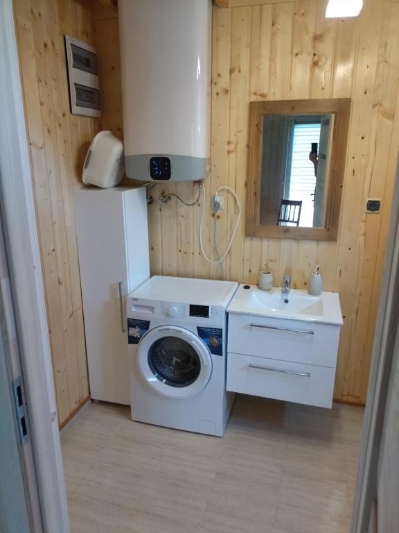 Dom z 2 sypialniami. Meals can be prepared in the well-fitted kitchen, which comes with a stovetop, a refrigerator, a dishwasher and kitchenware. The air-conditioned holiday home provides a flat-screen TV, a washing machine, a private entrance, a tea and coffee maker as well as garden views. The unit offers 5 beds. Powierzchnia pokoju ok.: 70 mkw.