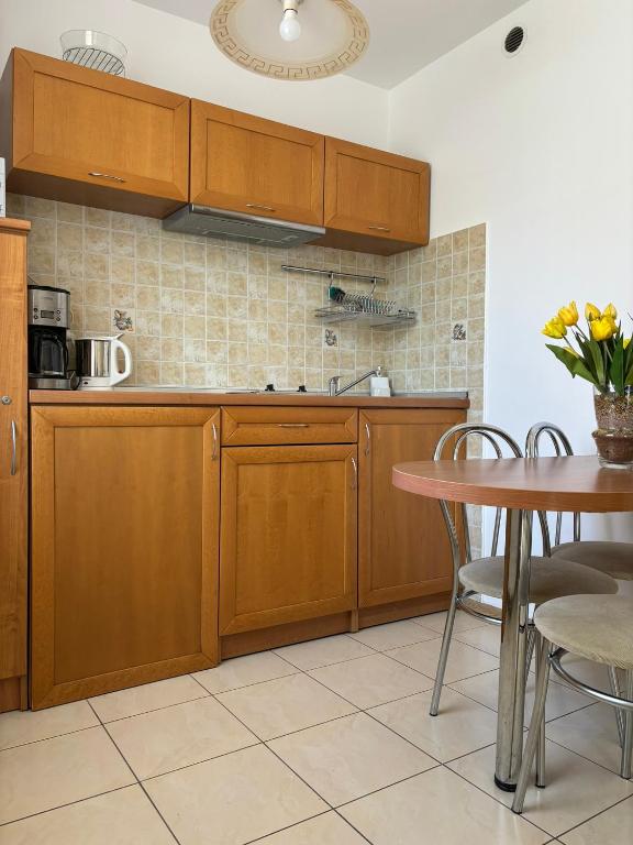 Apartament z balkonem. Guests will have a special experience as the apartment features a sauna. Featuring a private entrance, this apartment also consists of 1 bedroom, a seating area and 1 bathroom with a walk-in shower and a hairdryer. The fully equipped kitchenette features a stovetop, a refrigerator, kitchenware and a microwave. Boasting a terrace with city views, this apartment also provides a coffee machine and a flat-screen TV with satellite channels. The unit offers 3 beds. Apartament - 4 osobowy. Powierzchnia pokoju ok.: 40 mkw.