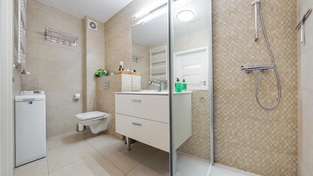 Apartament z 1 sypialnią. Guests will have a special experience as the apartment provides a hot tub. Featuring a private entrance, this apartment consists of 1 living room, 1 separate bedroom and 1 bathroom with a walk-in shower and a hairdryer. Guests can make meals in the kitchenette that is equipped with a stovetop, a refrigerator, a dishwasher and kitchenware. This apartment features a washing machine, flat-screen TV, ancourtyard view, as well as winechampagne for guests. The unit offers 2 beds. Apartament - 4 osobowy. Powierzchnia pokoju ok.: 48 mkw.