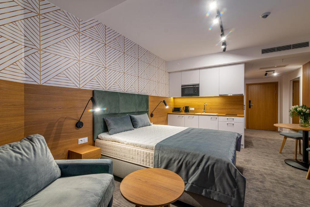 Apartament z widokiem na morze. Guests will have a special experience as this apartment provides a private pool and a sauna. The air-conditioned apartment features 1 bedroom and 1 bathroom with a walk-in shower and a hairdryer. In the well-fitted kitchenette, guests will find a stovetop, a refrigerator, a dishwasher and kitchenware. Featuring a balcony with sea views, this apartment also offers a minibar and a flat-screen TV with cable channels. The unit offers 1 bed. Apartament - 4 osobowy. Powierzchnia pokoju ok.: 30 mkw.