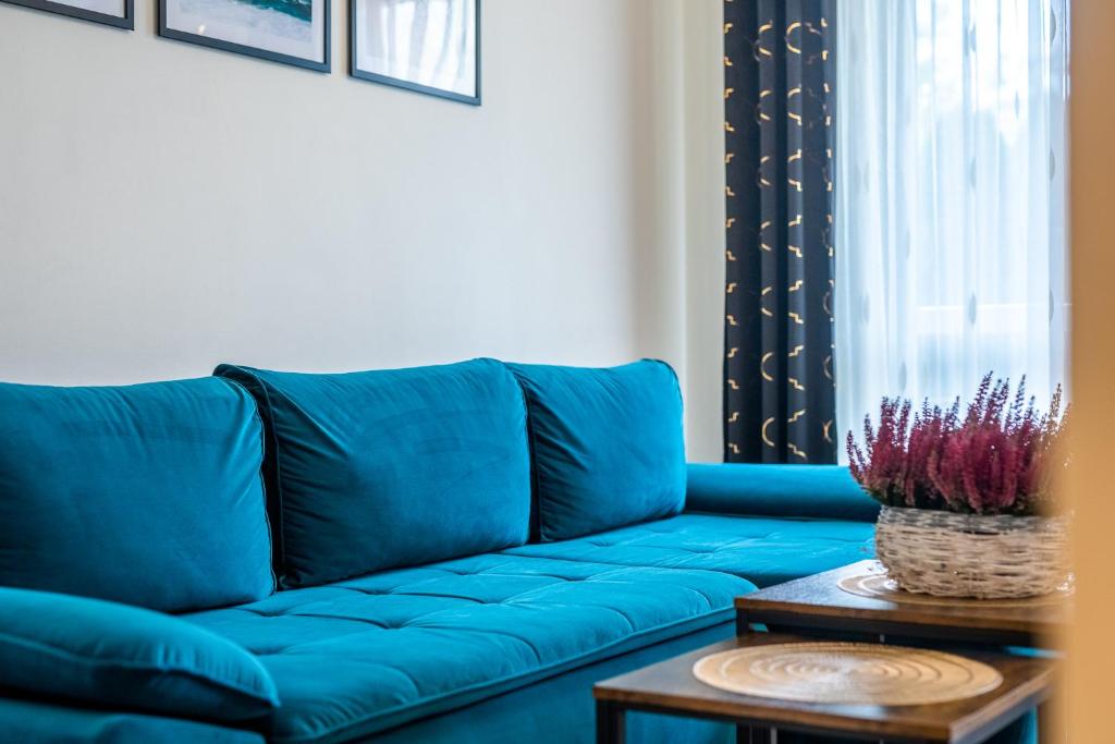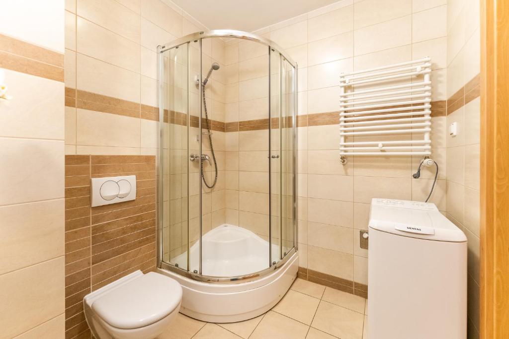 Apartament. This apartment includes 1 living room, 1 separate bedroom and 1 bathroom with a walk-in shower and a hairdryer. The well-equipped kitchenette has a stovetop, a refrigerator, a dishwasher and kitchenware. Boasting a terrace, this apartment also offers a washing machine, a dining area and a flat-screen TV. The unit has 3 beds. Apartament - 5 osobowy. Powierzchnia pokoju ok.: 50 mkw.