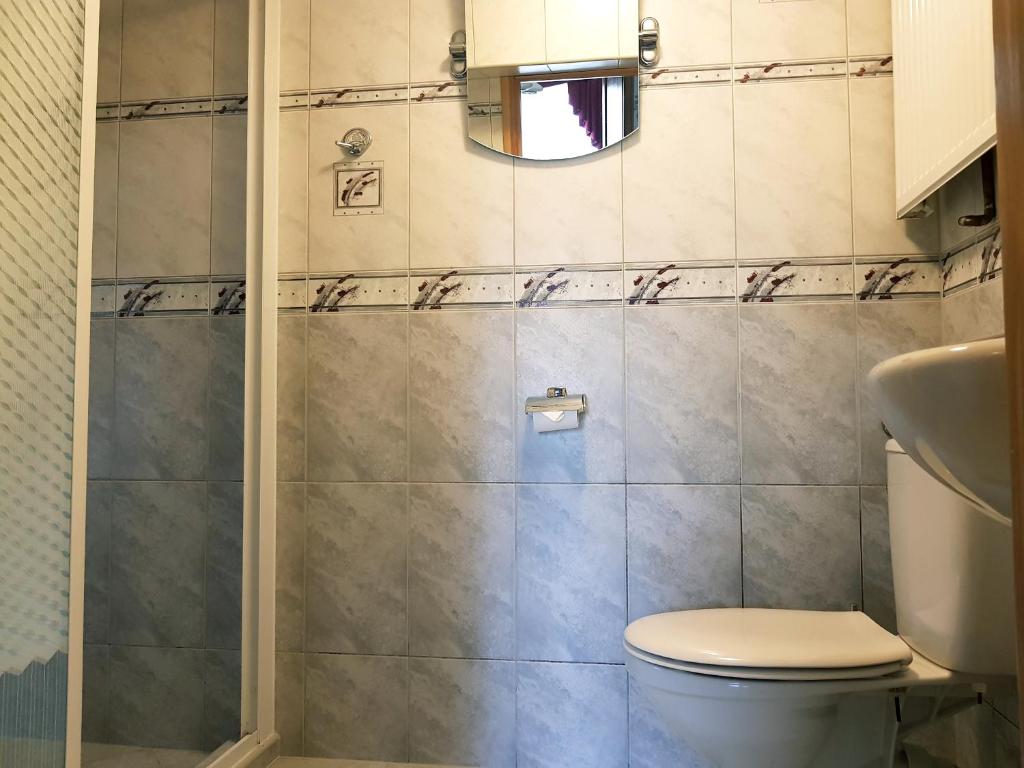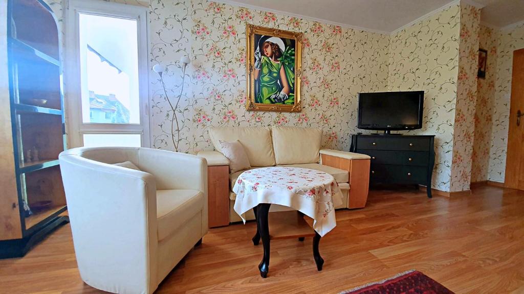 Pokój Dwuosobowy z prywatną łazienką poza pokojem. The double room offers a dining area, a wardrobe, as well as a private bathroom featuring a walk-in shower. This double room features an electric kettle, heating, a flat-screen TV and garden views. The unit offers 1 bed. Pokój Dwuosobowy - 2 osobowy. Powierzchnia pokoju ok.: 18 mkw.