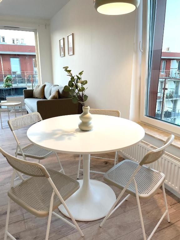 Apartament z 1 sypialnią. Featuring a private entrance, this apartment is comprised of 1 living room, 1 separate bedroom and 1 bathroom with a shower and a hairdryer. The fully equipped kitchen has a stovetop, a refrigerator, a dishwasher and kitchenware. This apartment features a washing machine, a tea and coffee maker, a flat-screen TV with streaming services and a terrace. The unit offers 2 beds. Apartament - 5 osobowy. Powierzchnia pokoju ok.: 35 mkw.