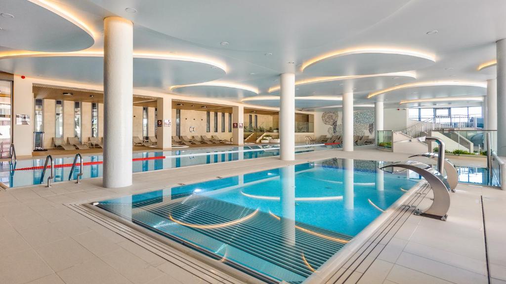 Apartament z 1 sypialnią. This apartments special features are the private pool and the sauna. This apartment consists of 1 living room, 1 separate bedroom and 1 bathroom with a shower and free toiletries. The well-equipped kitchenette has a stovetop, a refrigerator, a dishwasher and kitchenware. This wheelchair accessible apartment features a washing machine, a seating area with a flat-screen TV and a roll-in shower. The unit offers 2 beds. Apartament - 4 osobowy. Powierzchnia pokoju ok.: 50 mkw.