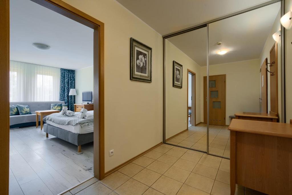 Apartament typu studio. The private pool and sauna are the special features of this studio. The studios kitchen, which has a stovetop and kitchenware, is available for cooking and storing food. The studio offers a coffee machine, a sofa, a balcony with a quiet street view as well as a private bathroom boasting a shower. The unit has 2 beds. Studio - 4 osobowy. Powierzchnia pokoju ok.: 43 mkw.