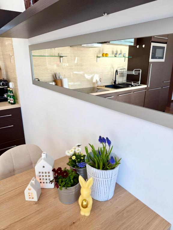 Apartament z 1 sypialnią. In the well-equipped kitchenette, guests will find a stovetop, a refrigerator, a dishwasher and kitchenware. Boasting a balcony with garden views, this apartment also features a washing machine and a flat-screen TV. The unit has 2 beds. Apartament - 4 osobowy. Powierzchnia pokoju ok.: 50 mkw.