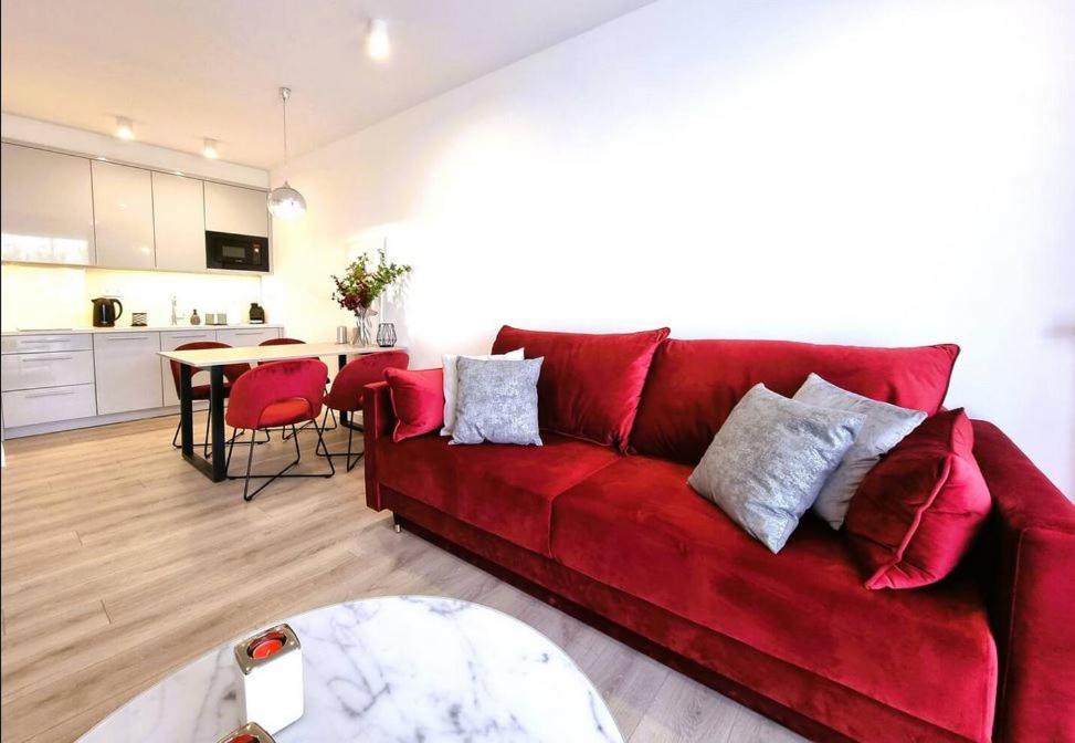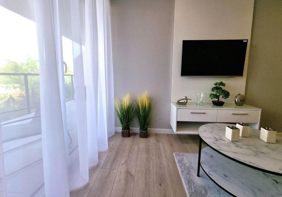 Oferta apartamentu obejmuje sypialnię (1), salon, kuchnię z pełnym wyposażeniem, w tym lodówką i ekspresem do kawy, a także łazienkę (1) z prysznicem oraz suszarką do włosów. W apartamencie zapewniono ręczniki i pościel.