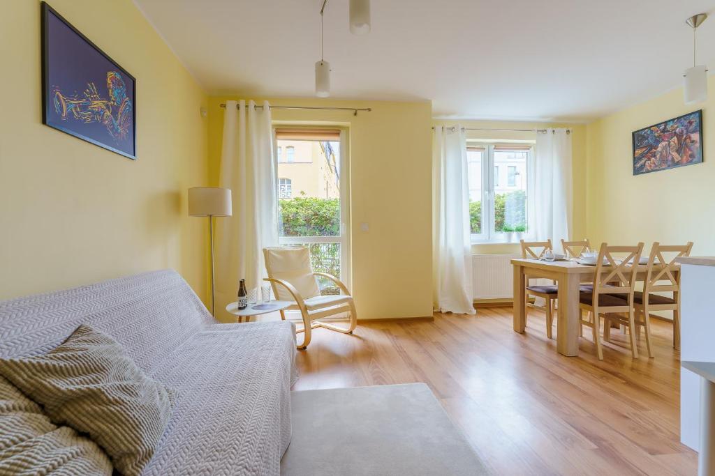 Apartament z 1 sypialnią. Featuring a private entrance, this apartment consists of 1 living room, 1 separate bedroom and 1 bathroom with a shower and a hairdryer. Meals can be prepared in the well-fitted kitchenette, which is equipped with a stovetop, a refrigerator, a dishwasher and kitchenware. This apartment features a washing machine, a tea and coffee maker, a flat-screen TV and a terrace. The unit offers 2 beds. Apartament - 4 osobowy. Powierzchnia pokoju ok.: 45 mkw.