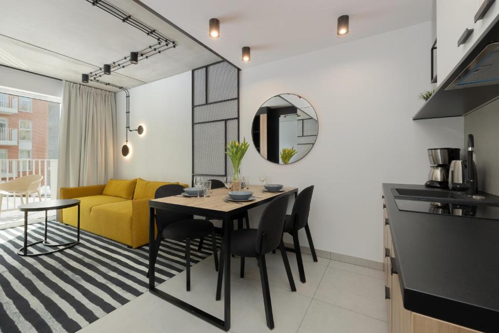 Apartament z 1 sypialnią. This apartment comprises 1 living room, 1 separate bedroom and 1 bathroom with a walk-in shower and a hairdryer. Guests can make meals in the kitchenette that comes with a stovetop, a refrigerator, a dishwasher and kitchenware. A seating area with a flat-screen TV, a tea and coffee maker and a balcony are provided in this apartment. The unit offers 2 beds. Powierzchnia pokoju ok.: 29 mkw. ;