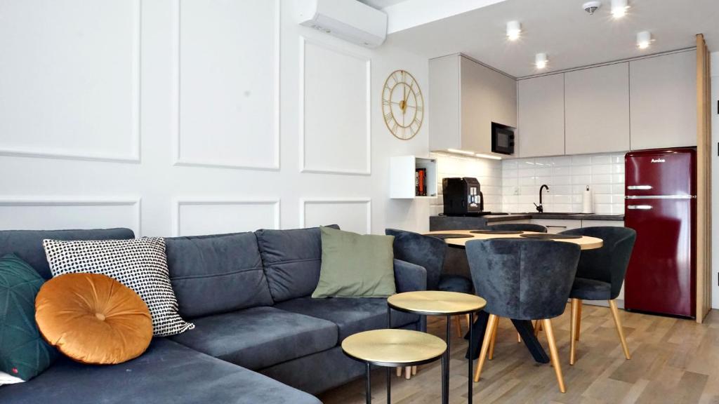 Oferta apartamentu obejmuje sypialnię (1), salon, kuchnię z pełnym wyposażeniem, w tym lodówką i ekspresem do kawy, a także łazienkę (1) z prysznicem oraz bezpłatnym zestawem kosmetyków. W apartamencie zapewniono ręczniki i pościel.