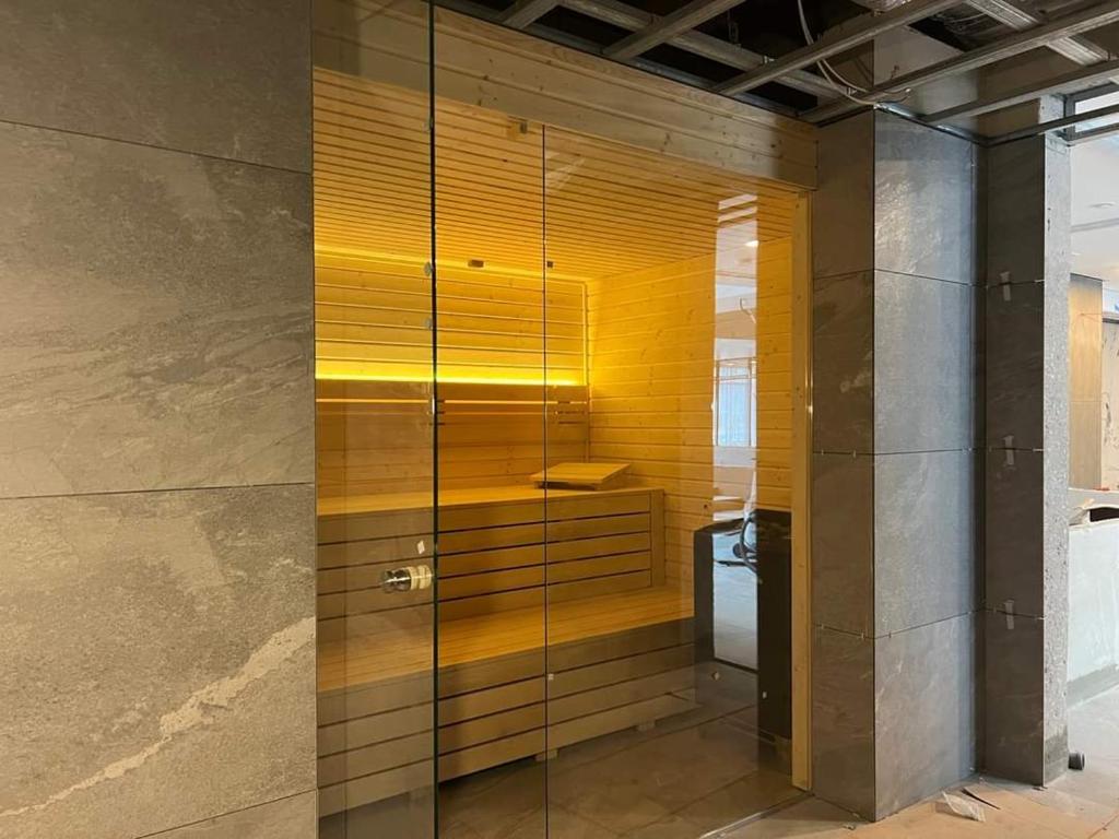 Zaplecze odnowy biologicznej obiektu Kołobrzeg Green Port SPA Restauracja Siłownia Dwa baseny Oli&Joly obejmuje saunę i wannę z hydromasażem.