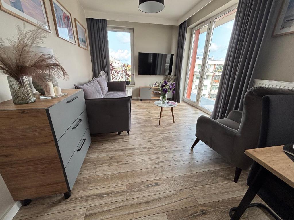 Apartament z 1 sypialnią. Boasting a private entrance, this apartment includes 1 living room, 1 separate bedroom and 1 bathroom with a walk-in shower and a hairdryer. In the fully equipped kitchen, guests will find a refrigerator, a dishwasher, kitchenware and an oven. The apartment offers a flat-screen TV, a washing machine, soundproof walls, a tea and coffee maker as well as garden views. The unit has 2 beds. Apartament - 4 osobowy. Powierzchnia pokoju ok.: 35 mkw.