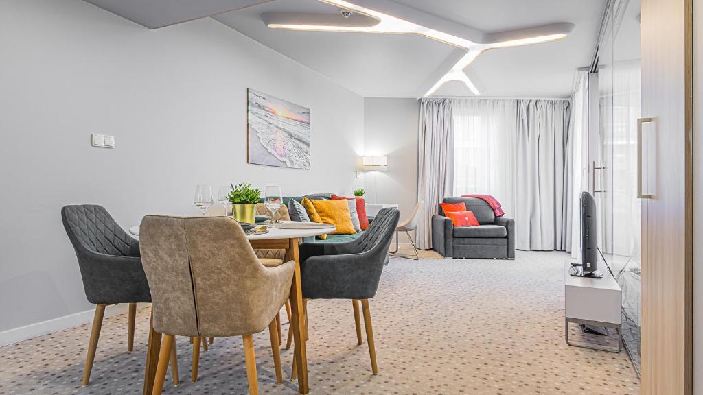 Apartament z 1 sypialnią. The private pool is a top feature of this apartment. This apartment comes with 1 living room, 1 separate bedroom and 1 bathroom with a shower and a hairdryer. Meals can be prepared in the kitchenette, which features a stovetop, a refrigerator and kitchenware. Boasting a balcony, this apartment also features an electric kettle, heating and a flat-screen TV with cable channels. The unit has 2 beds. Powierzchnia pokoju ok.: 43 mkw.