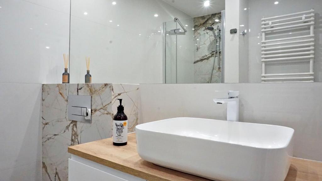 Apartament z 1 sypialnią. This apartments standout features are the hot tub and sauna. Boasting a private entrance, this air-conditioned apartment includes 1 living room, 1 separate bedroom and 1 bathroom with a shower and a hairdryer. In the fully equipped kitchen, guests will find a stovetop, a refrigerator, a dishwasher and kitchenware. This apartment has a tea and coffee maker, a seating area, a flat-screen TV and a balcony. The unit has 2 beds. Apartament - 4 osobowy. Powierzchnia pokoju ok.: 30 mkw.
