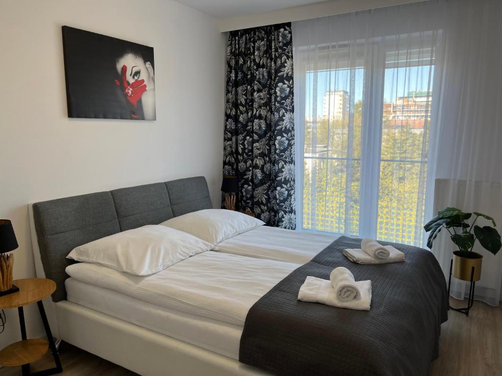 Apartament z 1 sypialnią. This apartment provides a fireplace. This apartment comprises 1 living room, 1 separate bedroom and 1 bathroom with a shower and free toiletries. Meals can be prepared in the well-fitted kitchenette, which comes with a stovetop, a refrigerator, a dishwasher and kitchenware. This apartment features a washing machine, flat-screen TV with satellite channels, city views, as well as winechampagne for guests. The unit offers 2 beds. Apartament - 4 osobowy. Powierzchnia pokoju ok.: 45 mkw.