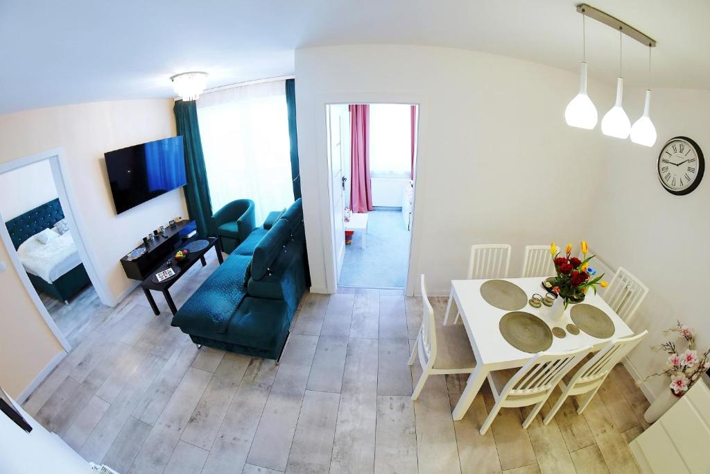 Apartament z 2 sypialniami. This apartments standout feature is the fireplace. The apartment has 2 bedrooms and 1 bathroom with a bath and free toiletries. In the kitchenette, guests will find a stovetop, a refrigerator, kitchenware and an oven. This apartment features a washing machine, soundproof walls, flat-screen TV with streaming services, as well as chocolate for guests. The unit has 3 beds. Apartament - 4 osobowy. Powierzchnia pokoju ok.: 60 mkw.