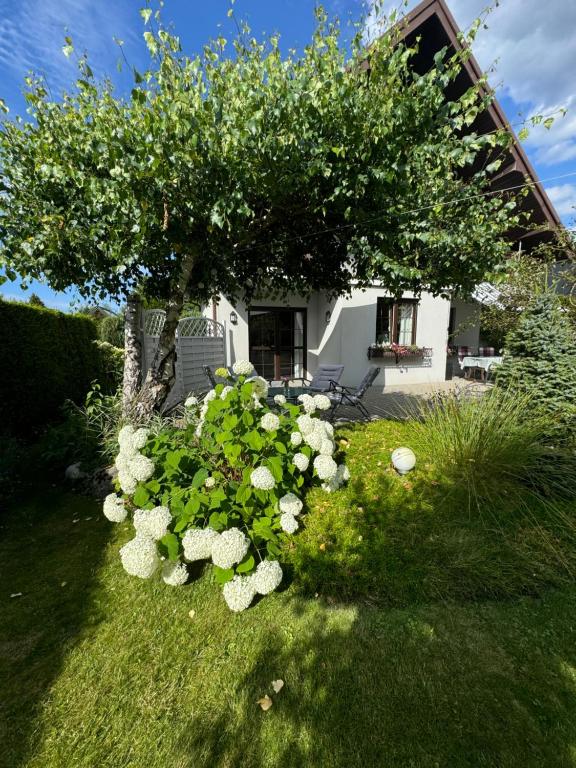 Dom z 3 sypialniami. This holiday homes standout feature is the fireplace. Guests will find a stovetop, a refrigerator, a dishwasher and kitchenware in the kitchen. The holiday home also features a barbecue. The spacious holiday home offers a washing machine, a coffee machine, a seating area as well as a terrace with garden views. The unit has 4 beds. Dom wakacyjny - 6 osobowy. Powierzchnia pokoju ok.: 150 mkw.