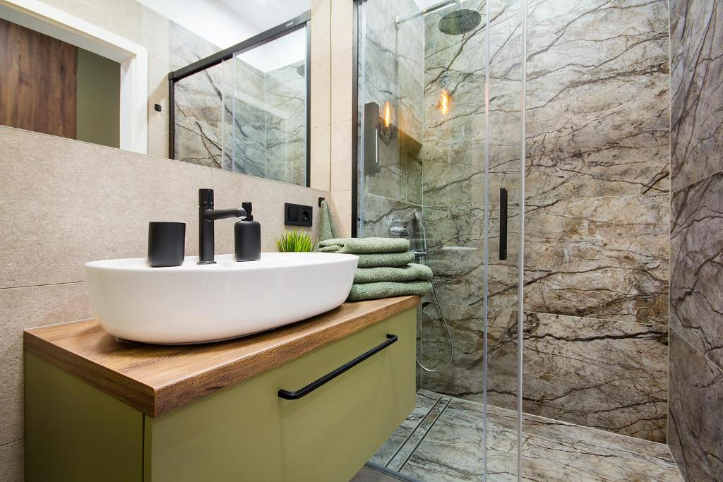 Apartament z 1 sypialnią i balkonem. Boasting a private entrance, this air-conditioned apartment comes with 1 living room, 1 separate bedroom and 1 bathroom with a shower and a hairdryer. Meals can be prepared in the kitchen, which features a stovetop, a refrigerator, a dishwasher and kitchenware. This apartment has a washing machine, flat-screen TV with streaming services, city views, as well as chocolate for guests. The unit has 2 beds. Apartament - 4 osobowy. Powierzchnia pokoju ok.: 48 mkw.