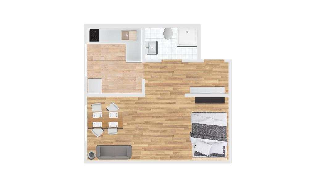 W apartamencie do dyspozycji gości przygotowano sypialnię (1), kuchnię ze standardowym wyposażeniem, takim jak lodówka i zmywarka, a także łazienkę (1) z prysznicem. Wyposażenie obejmuje także pralkę oraz telewizor z płaskim ekranem z dostępem do kanałów kablowych. W apartamencie zapewniono ręczniki i pościel.