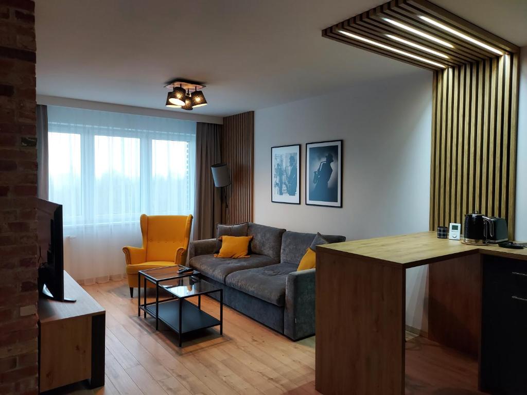 Apartament z 1 sypialnią. This apartment includes 1 living room, 1 separate bedroom and 1 bathroom with a shower and a hairdryer. The fully equipped kitchen has a stovetop, a refrigerator, a dishwasher and kitchenware. This apartment features soundproof walls, a tea and coffee maker, a flat-screen TV and a terrace. The unit has 1 bed. Apartament - 2 osobowy. Powierzchnia pokoju ok.: 46 mkw.