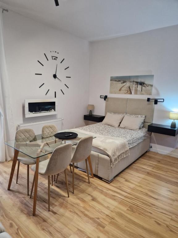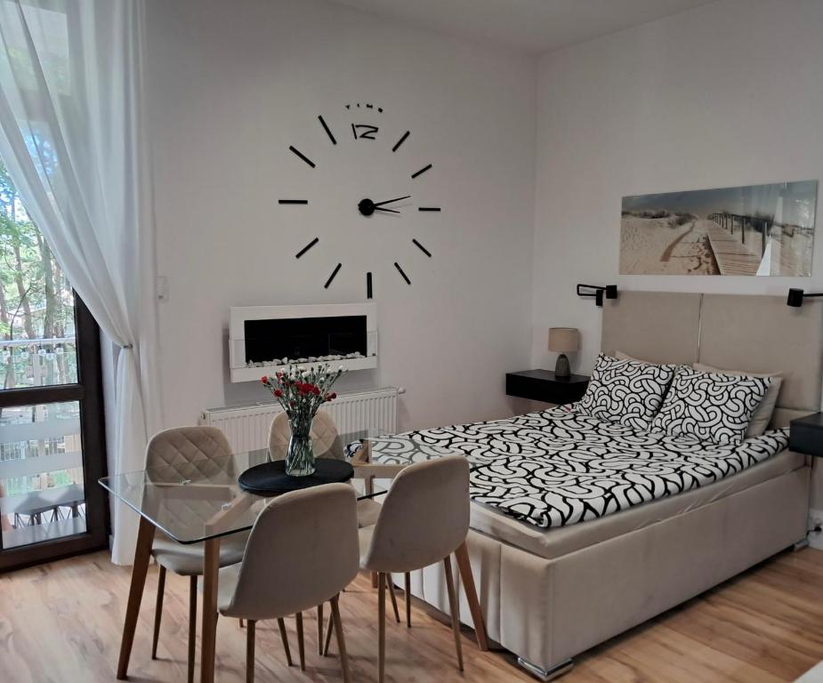 Studio. The fireplace is a top feature of this studio. In the well-equipped kitchen, guests will find a stovetop, a refrigerator, kitchenware and a toaster. The studio features a private entrance, a tea and coffee maker, a terrace with garden views as well as a private bathroom boasting a walk-in shower. The unit has 2 beds. Studio - 4 osobowy. Powierzchnia pokoju ok.: 30 mkw.