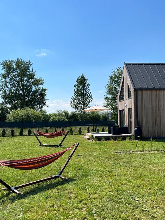 Dom z 2 sypialniami. This holiday home consists of 1 living room, 2 separate bedrooms and 1 bathroom with a shower and a hairdryer. The well-fitted kitchenette features a stovetop, a refrigerator, a dishwasher and kitchenware. Featuring a terrace with garden views, this holiday home also provides a tea and coffee maker and a flat-screen TV. The unit offers 3 beds. Dom wakacyjny - 5 osobowy. Powierzchnia pokoju ok.: 50 mkw.