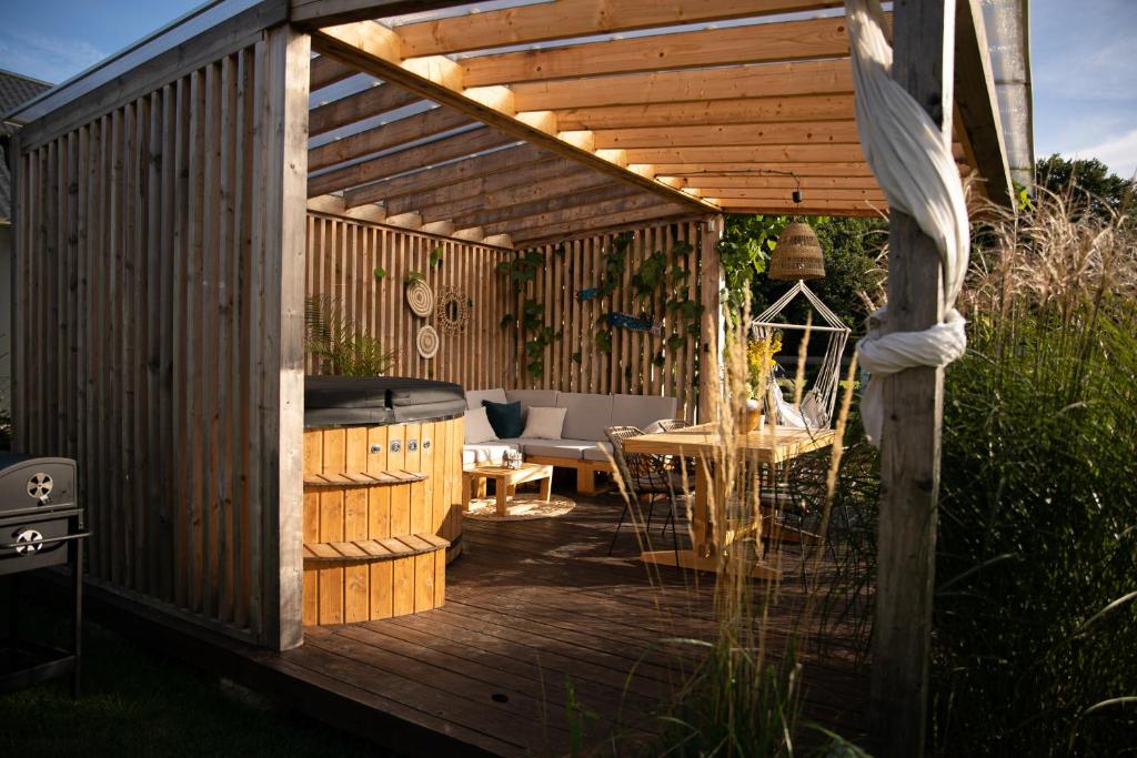 Dom wakacyjny. Guests will have a special experience as this holiday home offers a private pool, a hot tub and a fireplace. Featuring a private entrance, this holiday home also comprises 1 living room, 2 separate bedrooms and 1 bathroom with a shower. Guests will find a stovetop, a refrigerator, a dishwasher and kitchenware in the well-equipped kitchen. The holiday home also provides guests with a barbecue. Boasting a terrace with garden views, this holiday home also provides a washing machine and a flat-screen TV. The unit offers 4 beds. Powierzchnia pokoju ok.: 55 mkw.