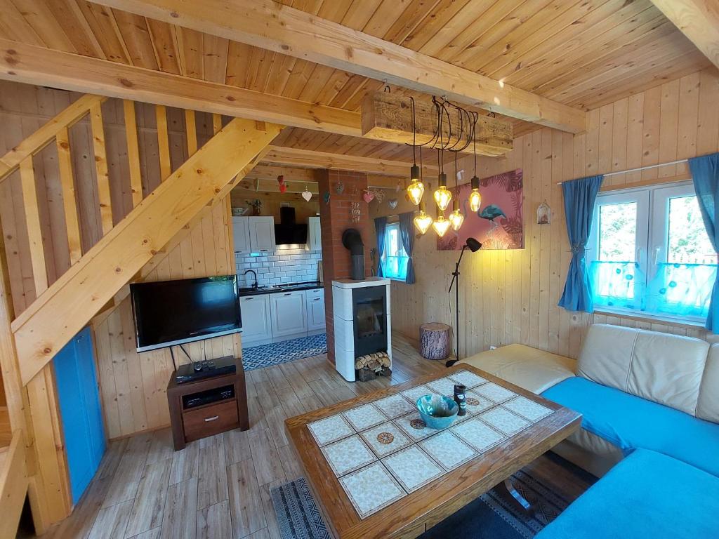 Domek. This chalet provides a fireplace. Boasting a private entrance, this chalet includes 1 living room, 2 separate bedrooms and 1 bathroom with a walk-in shower and a hairdryer. Guests will find a refrigerator, kitchenware and a toaster in the kitchen. The chalet also features a barbecue. Featuring a terrace with garden views, this chalet also offers a tea and coffee maker and a flat-screen TV with cable channels. The unit has 5 beds. Domek - 5 osobowy. Powierzchnia pokoju ok.: 70 mkw. ;