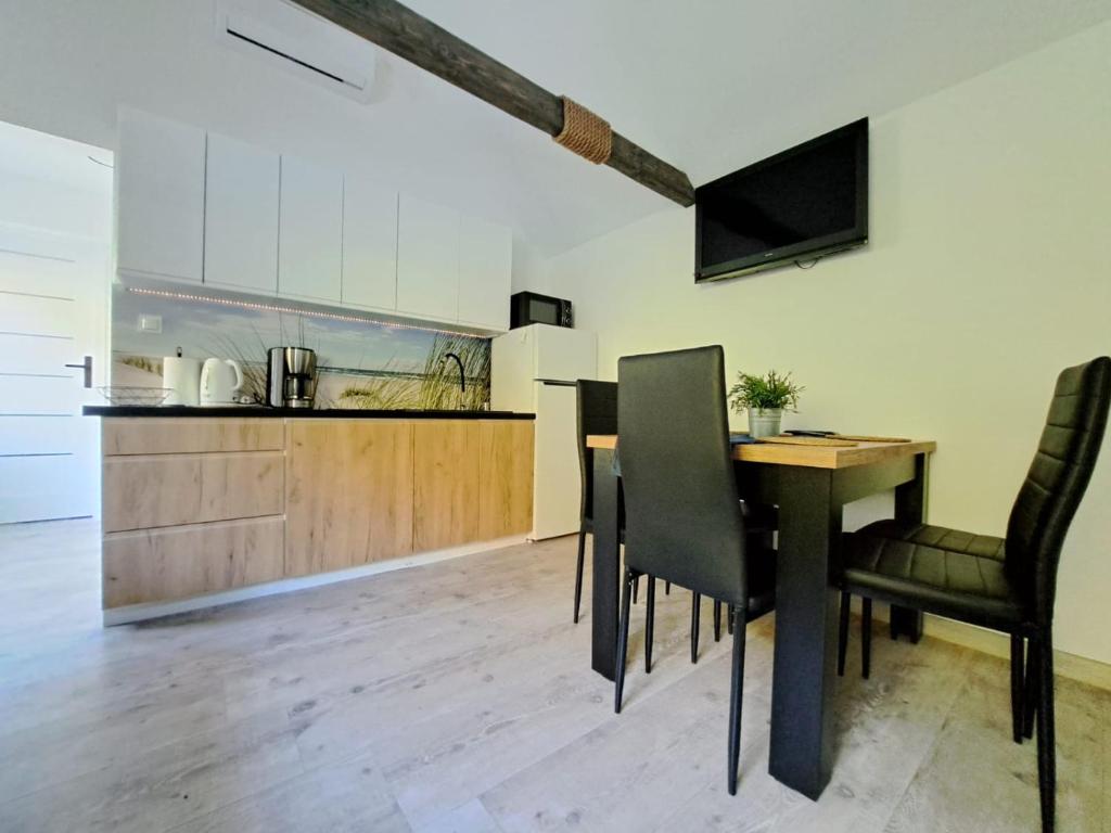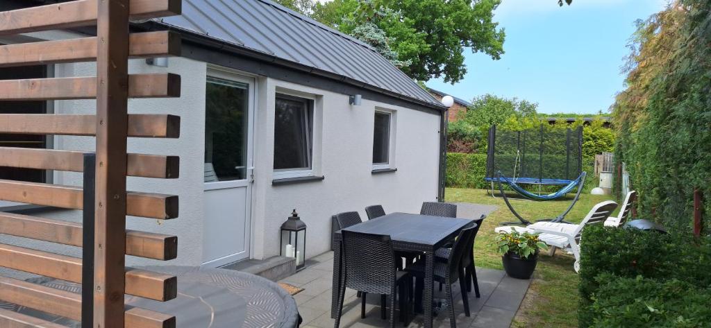 Dom z 2 sypialniami. This air-conditioned holiday home consists of 1 living room, 2 separate bedrooms and 1 bathroom with a shower. Guests will find a stovetop, a refrigerator, kitchenware and a microwave in the kitchenette. The holiday home also offers a barbecue. Featuring a terrace, this holiday home also provides a coffee machine, a seating area and a flat-screen TV. The unit offers 4 beds. Dom wakacyjny - 7 osobowy. Powierzchnia pokoju ok.: 40 mkw.