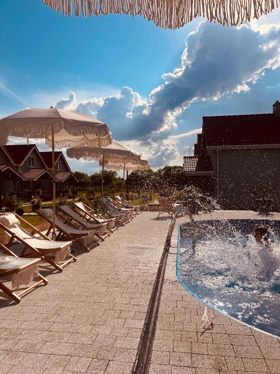 Dom z 2 sypialniami. This holiday home features a private pool. Boasting 2 bedrooms and 1 bathroom, this holiday home has a living room and terraceyou can relax. The holiday homes kitchenette, which features kitchenware, is available for cooking and storing food. This holiday home has a wardrobe, a dressing room and a flat-screen TV. The unit offers 4 beds. Dom wakacyjny - 5 osobowy. Powierzchnia pokoju ok.: 58 mkw.
