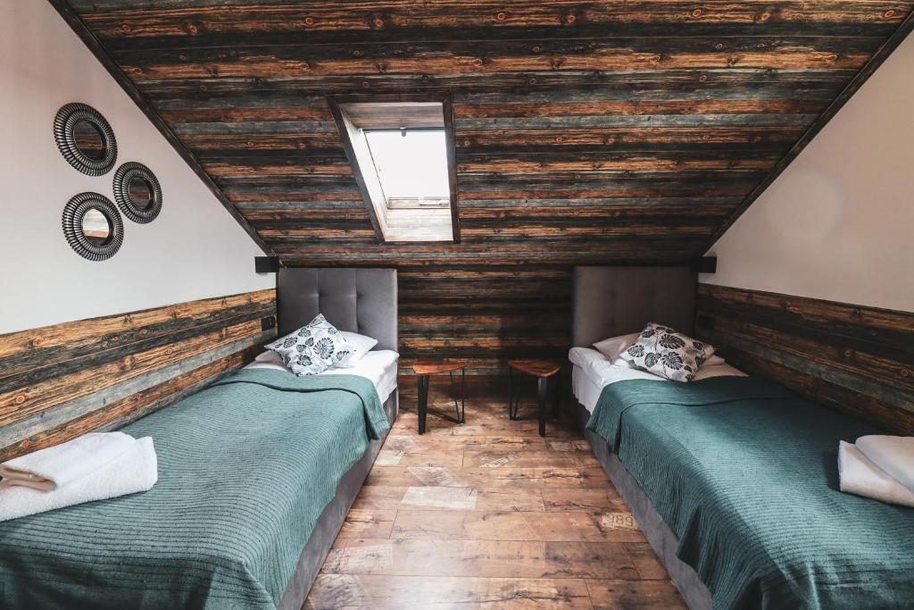 Domek z 2 sypialniami. Boasting a private entrance, this air-conditioned chalet includes 1 living room, 2 separate bedrooms and 1 bathroom with a shower and a hairdryer. Guests will find a stovetop, a refrigerator, a dishwasher and a microwave in the kitchenette. The chalet also features a barbecue. Featuring a balcony with garden views, this chalet also offers a seating area and a flat-screen TV with cable channels. The unit has 4 beds. Domek - 6 osobowy. Powierzchnia pokoju ok.: 36 mkw.