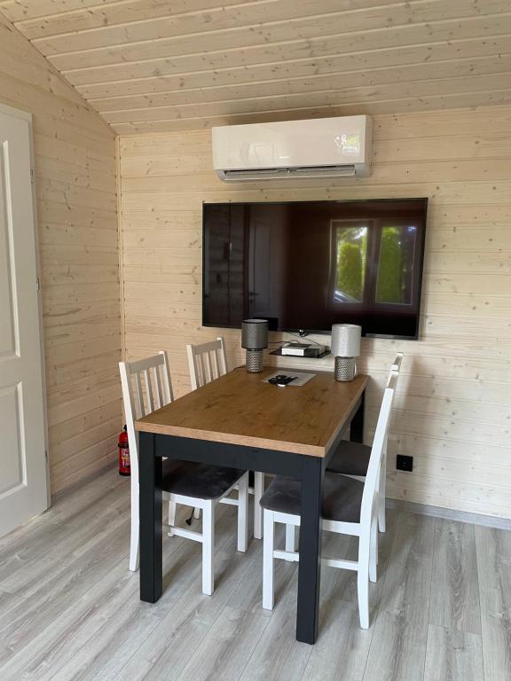 Dom wakacyjny. This air-conditioned holiday home includes 1 living room, 2 separate bedrooms and 1 bathroom with a shower. In the fully equipped kitchenette, guests will find a refrigerator, kitchenware, a microwave and an electric kettle. This holiday home has a seating area, a wardrobe, a flat-screen TV with satellite channels and a terrace. The unit has 4 beds. Dom wakacyjny - 5 osobowy. Powierzchnia pokoju ok.: 35 mkw. ;