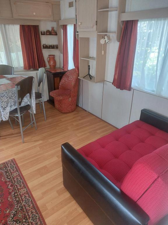 Dom z 2 sypialniami. This holiday homes special feature is the fireplace. Featuring a private entrance, this holiday home comprises 1 living room, 2 separate bedrooms and 1 bathroom with a shower. The holiday homes kitchen, which has a refrigerator and kitchenware, is available for cooking and storing food. The holiday home features parquet floors, a seating area with a flat-screen TV, a wardrobe, heating as well as garden views. The unit offers 4 beds. Dom wakacyjny - 6 osobowy. Powierzchnia pokoju ok.: 24 mkw.