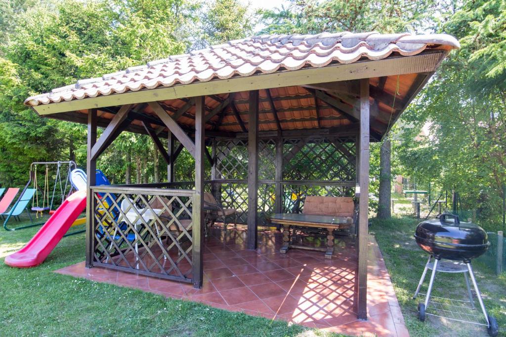 Willa. This villas standout feature is the fireplace. Guests will find a stovetop, a refrigerator, a dishwasher and kitchenware in the fully equipped kitchen. The villa also has a barbecue. The villa offers a washing machine, a tea and coffee maker, a terrace with garden views as well as a shared bathroom featuring a shower. The unit offers 10 beds. Willa - 12 osobowy. Powierzchnia pokoju ok.: 180 mkw.