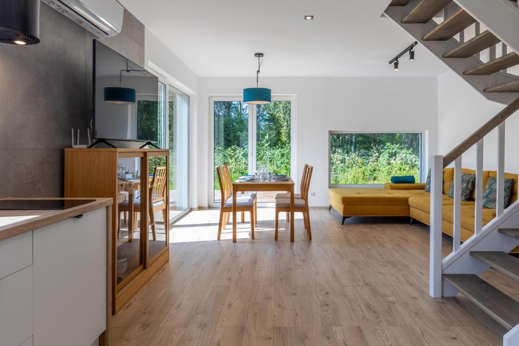 Dom z 2 sypialniami. This air-conditioned holiday home is comprised of 1 living room, 2 separate bedrooms and 2 bathrooms with a bath. Guests will find a stovetop, a refrigerator, a dishwasher and kitchenware in the fully equipped kitchen. The holiday home also has a barbecue. Featuring a terrace with garden views, this holiday home also offers a coffee machine and a flat-screen TV with streaming services. The unit offers 4 beds. Dom wakacyjny - 6 osobowy. Powierzchnia pokoju ok.: 70 mkw.