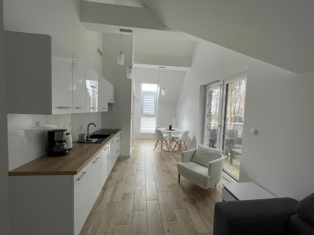 Obiekt Biały Klif oferuje balkon oraz widok na ogród. Do dyspozycji Gości jest również ekspres do kawy. Odległość ważnych miejsc od obiektu: Plaża Mechelinki – około niecały kilometr. Obiekt usytuowany jest przy plaży i oferuje bezpłatne Wi-Fi.