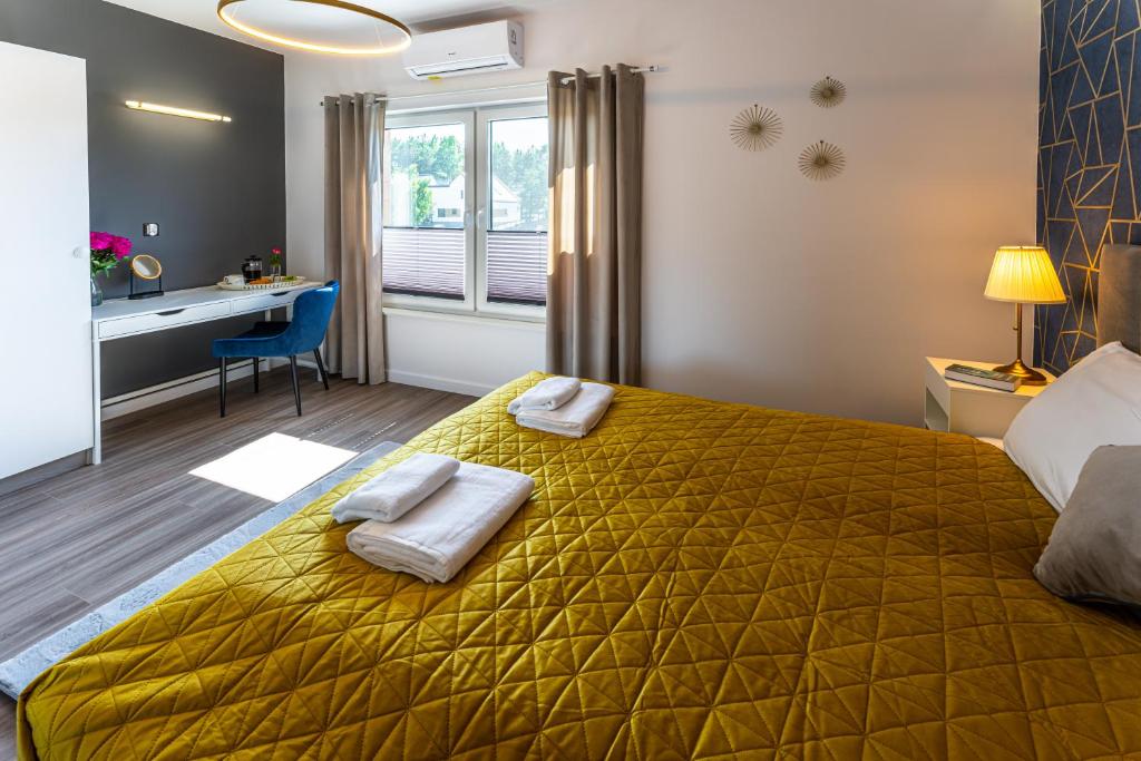 Apartament. W dobrze wyposażonym aneksie kuchennym znajduje się płyta kuchenna, lodówka i przybory kuchenne. Ten klimatyzowany apartament dysponuje oddzielnym wejściem, łazienką oraz tarasem. Dla Gości przygotowano zestaw do parzenia kawy i herbaty. W tej opcji zakwaterowania zapewniono 1 łóżko. Apartament - 2 osobowy. Powierzchnia pokoju ok.: 20 mkw. ;
