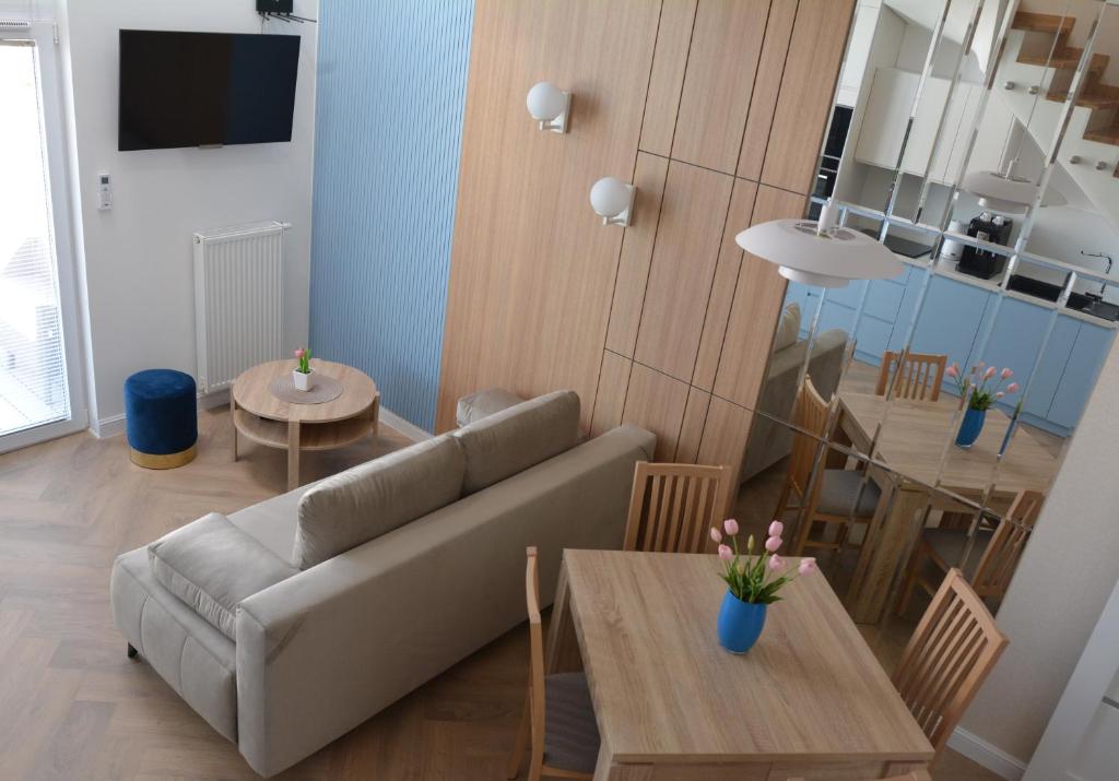 Apartament z 1 sypialnią. This apartment is comprised of 1 living room, 1 separate bedroom and 1 bathroom with a bath or a shower and free toiletries. The apartments kitchen is available for cooking and storing food. Featuring a terrace, this apartment also offers air conditioning, a washing machine and a flat-screen TV. The unit offers 2 beds. Apartament - 4 osobowy. Powierzchnia pokoju ok.: 44 mkw.