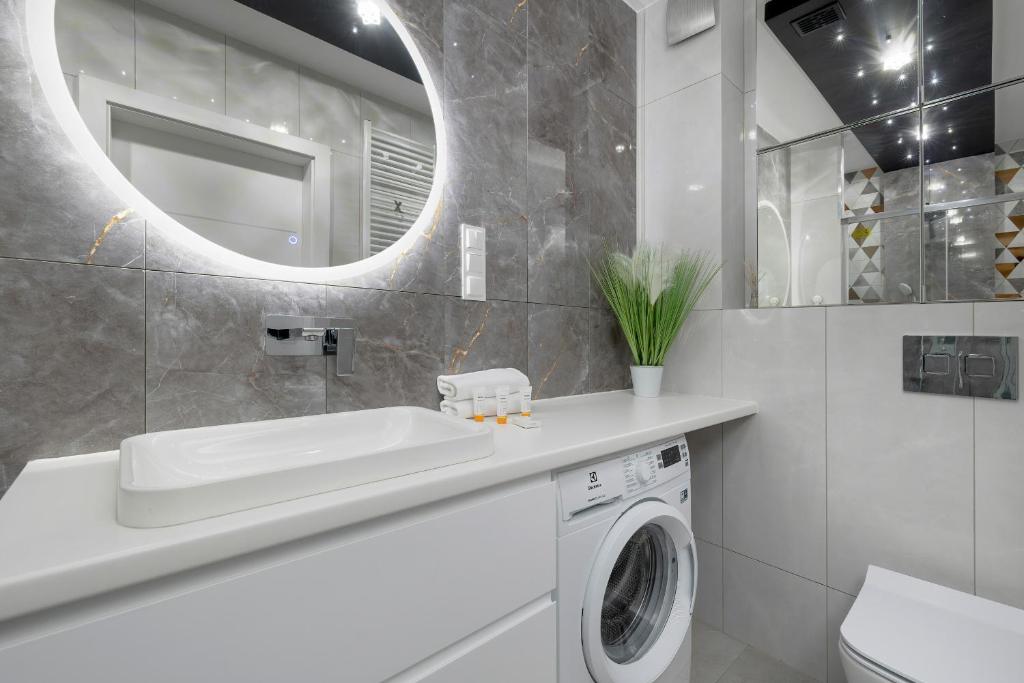 Apartament z tarasem. Boasting a private entrance, this air-conditioned apartment comes with 1 living room, 1 separate bedroom and 1 bathroom with a shower and a hairdryer. The fully equipped kitchen features a refrigerator, a dishwasher, kitchenware and an oven. This apartment has a washing machine, a tea and coffee maker, a flat-screen TV and a terrace. The unit has 2 beds. Powierzchnia pokoju ok.: 40 mkw.