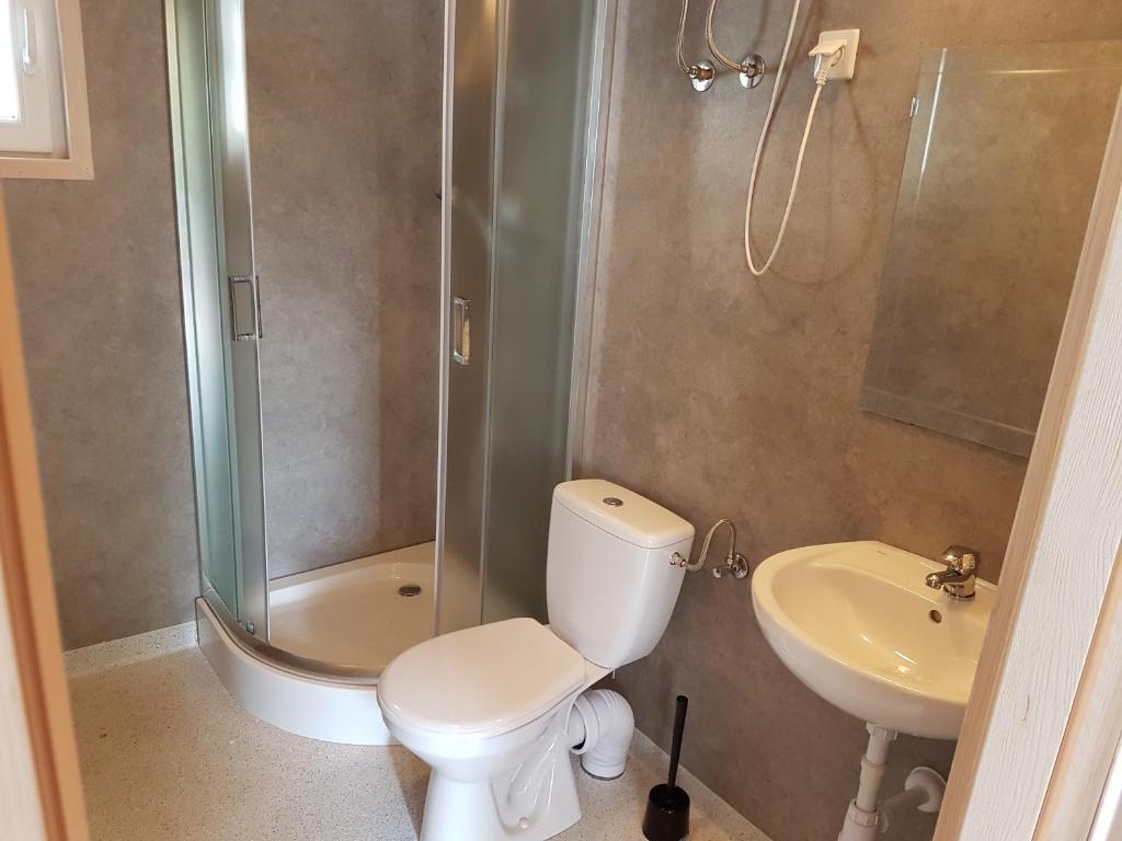 Dom z 1 sypialnią. This holiday home is comprised of 1 living room, 1 separate bedroom and 1 bathroom with a shower. Guests will find a stovetop, a refrigerator, kitchenware and an electric kettle in the fully equipped kitchen. The holiday home also has a barbecue. Featuring a terrace, this holiday home also offers a wardrobe, a high chair for children and a flat-screen TV. The unit offers 3 beds. Dom wakacyjny - 5 osobowy. Powierzchnia pokoju ok.: 30 mkw.