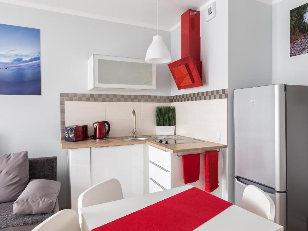 Apartament typu Deluxe. This apartment is comprised of 1 living room, 1 separate bedroom and 1 bathroom with a shower and a hairdryer. In the well-fitted kitchenette, guests will find a stovetop, a refrigerator, kitchenware and a toaster. Featuring a balcony with garden views, this apartment also offers a coffee machine and a flat-screen TV with cable channels. The unit offers 2 beds. Apartament - 4 osobowy. Powierzchnia pokoju ok.: 34 mkw.
