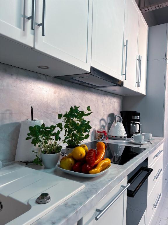 Oferta apartamentu obejmuje sypialnię (1), salon, aneks kuchenny z pełnym wyposażeniem, w tym lodówką i ekspresem do kawy, a także łazienkę (1) z bidetem oraz suszarką do włosów. W apartamencie zapewniono ręczniki i pościel.