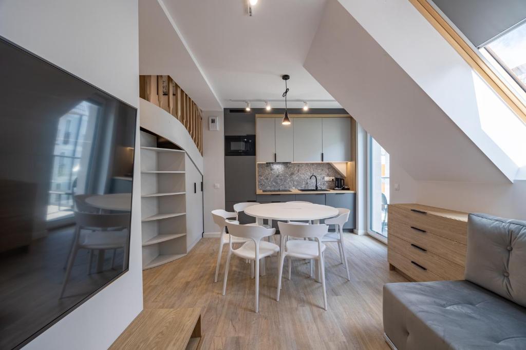 Luksusowy apartament dwupoziomowy z balkonem i sauną. Atutem tego apartamentu jest sauna. Jest to klimatyzowany apartament, który mieści salon, 3 oddzielne sypialnie i 2 łazienki z prysznicem typu walk-in. W dobrze wyposażonej kuchni przygotowano płytę kuchenną, lodówkę, zmywarkę do naczyń oraz przybory kuchenne. Ten apartament jest dostępny dla osób poruszających się na wózkach inwalidzkich. Udogodnienia obejmują kabinę prysznicową bez barier, część wypoczynkową z telewizorem z płaskim ekranem i pralkę. W tej opcji zakwaterowania dostępne są 4 łóżka. Apartament - 8 osobowy. Powierzchnia pokoju ok.: 53 mkw. ;