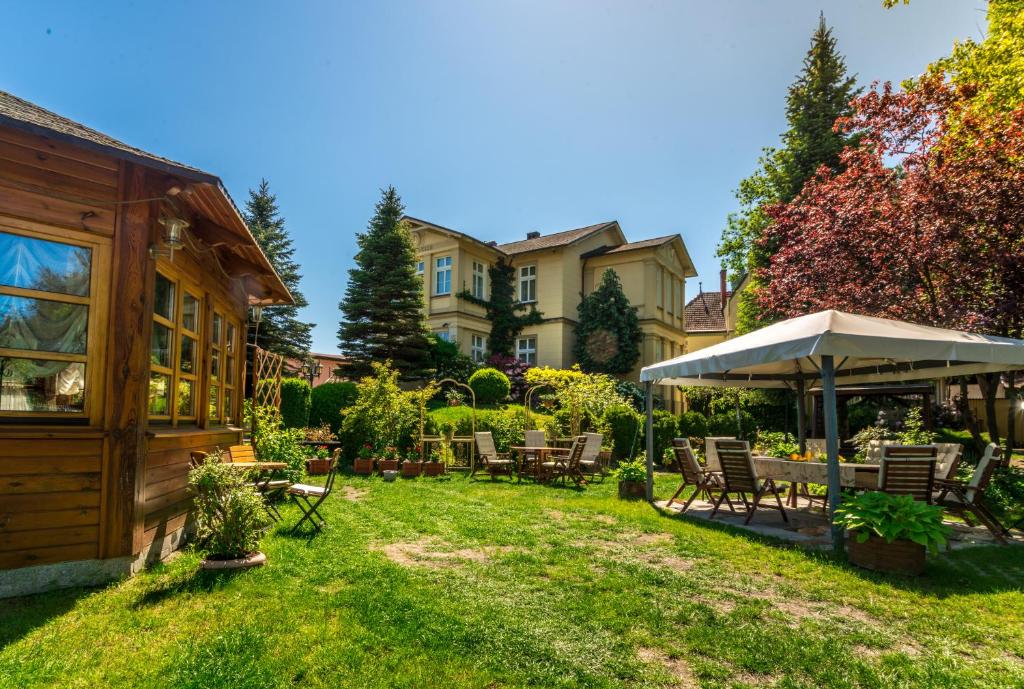 W wolnej chwili warto odprężyć się w dużym, pięknym ogrodzie ze stołami i krzesłami. Do dyspozycji Gości jest tu także sprzęt do grillowania.