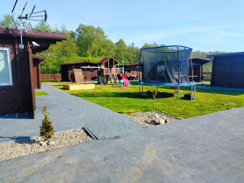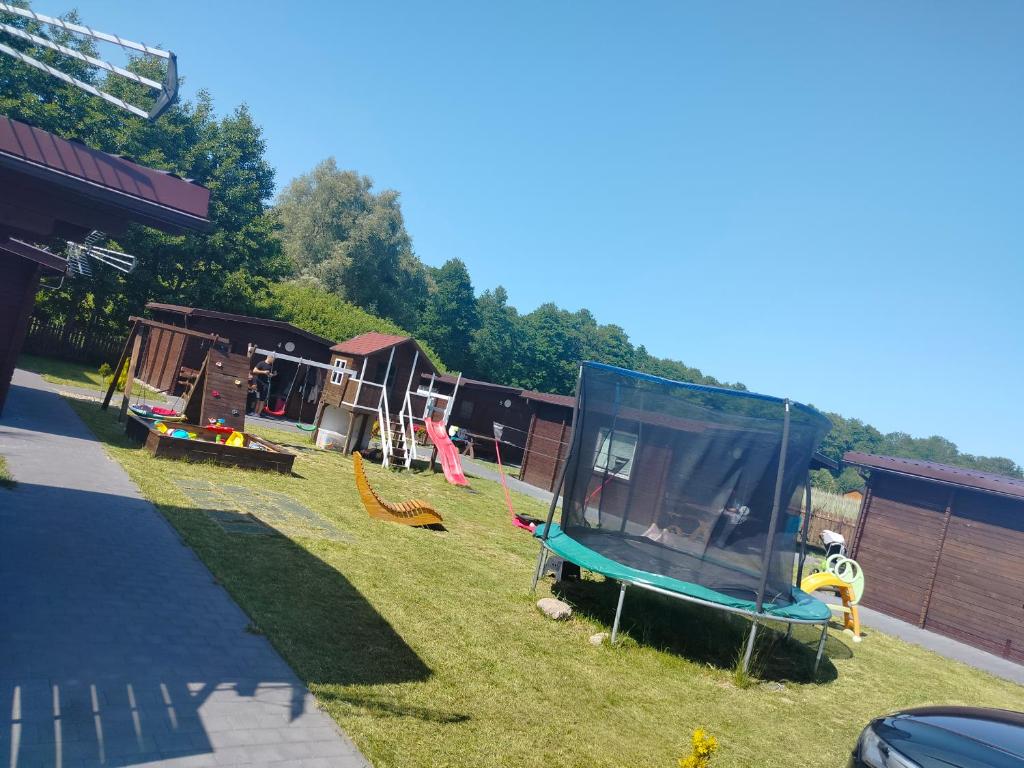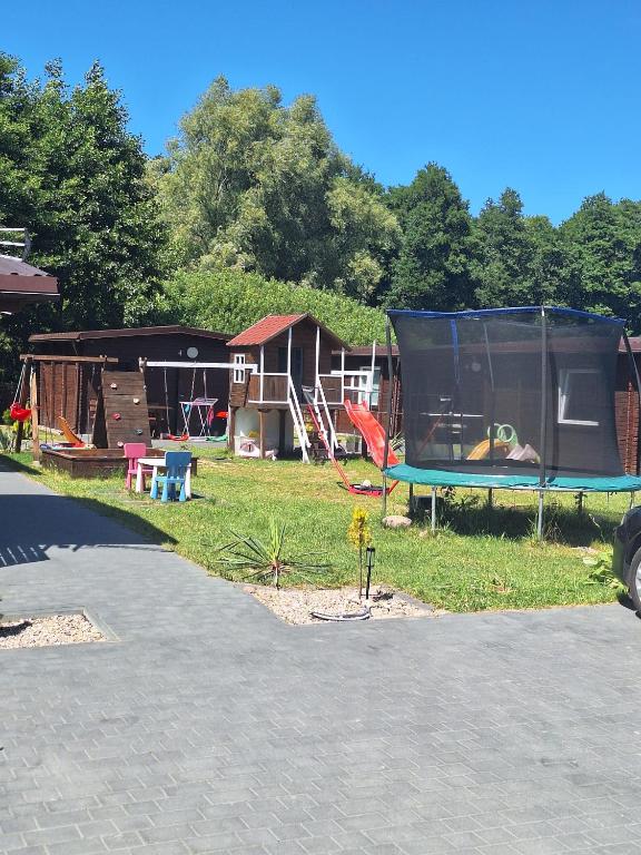 Domek. This chalet comes with 1 bedroom, kitchenette, a terrace and 1 bathroom with a shower. Guests will find a refrigerator, kitchenware and a microwave in the kitchenette. The chalet also includes a barbecue. The chalet features a private entrance, a dining area, an electric kettle, a flat-screen TV, as well as garden views. The unit has 2 beds. Domek - 4 osobowy. ;