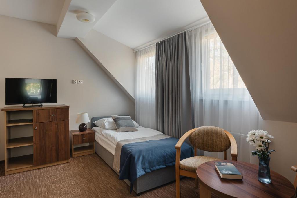 Pokój jednoosobowy typu Standard. The single room provides a wardrobe, heating, as well as a private bathroom featuring a shower and a hairdryer. This single room offers a flat-screen TV. The unit offers 1 bed. Pokój Jednoosobowy - 1 osobowy. Powierzchnia pokoju ok.: 10 mkw. ;