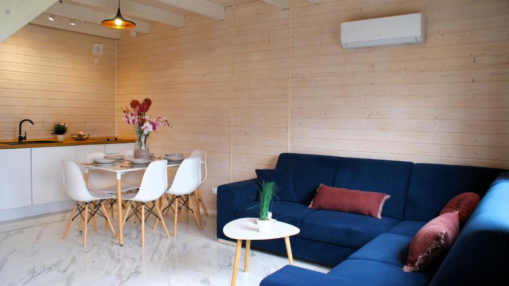 Domek z 2 sypialniami. Boasting a private entrance, this air-conditioned chalet comes with 1 living room, 2 separate bedrooms and 1 bathroom with a shower and a hairdryer. In the fully equipped kitchen, guests will find a stovetop, a refrigerator, a dishwasher and kitchenware. Featuring a terrace, this chalet also features a coffee machine, a seating area and a flat-screen TV with streaming services. The unit has 4 beds. Domek - 6 osobowy. Powierzchnia pokoju ok.: 60 mkw. ;
